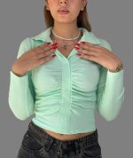 اگر به دنبال یک کراپ خاص و ترندی هستید که استایل شما را زنانه‌تر و جذاب‌تر نشان دهد، کراپ آستین بلند جلو چیندار کد 1088 انتخابی فوق‌العاده خواهد بود. این مدل هم برای استفاده روزمره و هم برای موقعیت‌های خاص طراحی شده و می‌تواند ظاهری شیک و خاص برای شما به ارمغان بیاورد.