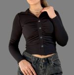 کراپ یقه چپ و راستی با آستین فینگر دار کد 1007