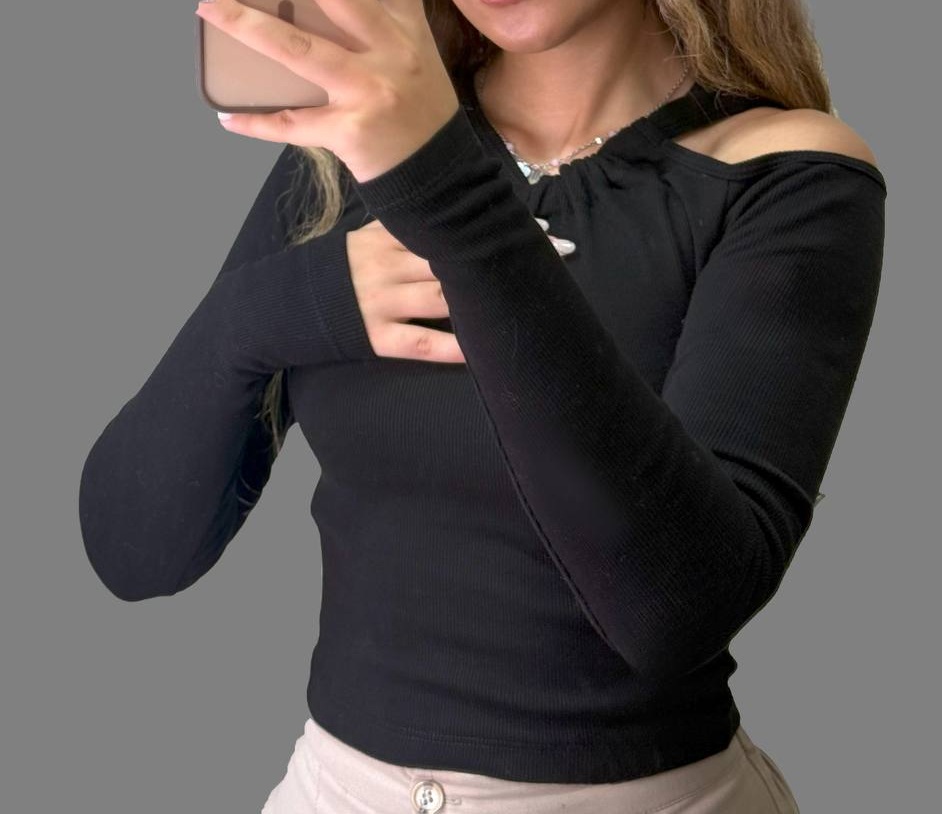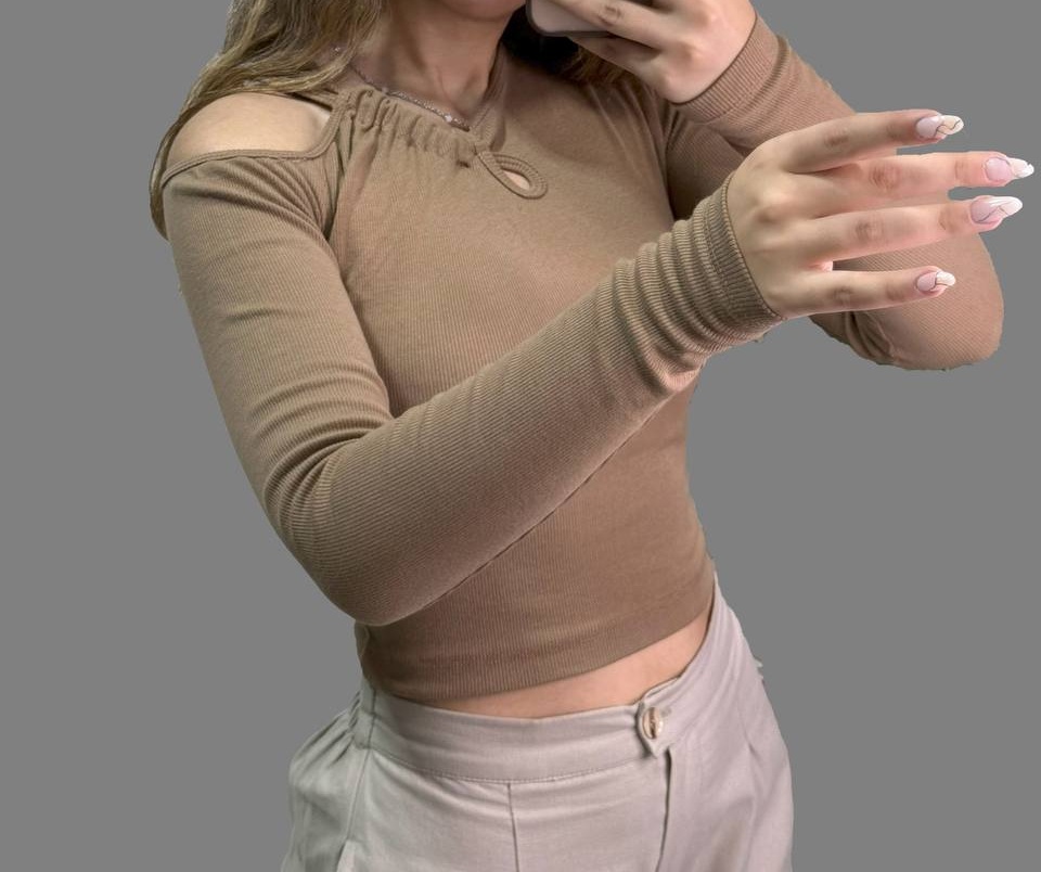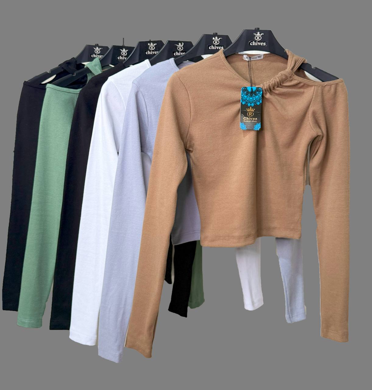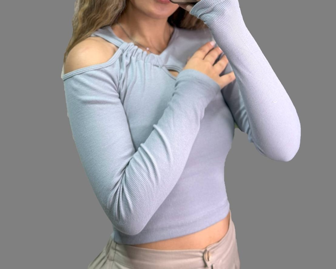 مدل: کراپ آستین بلند دخترانه سر شونه خالی کد 1087