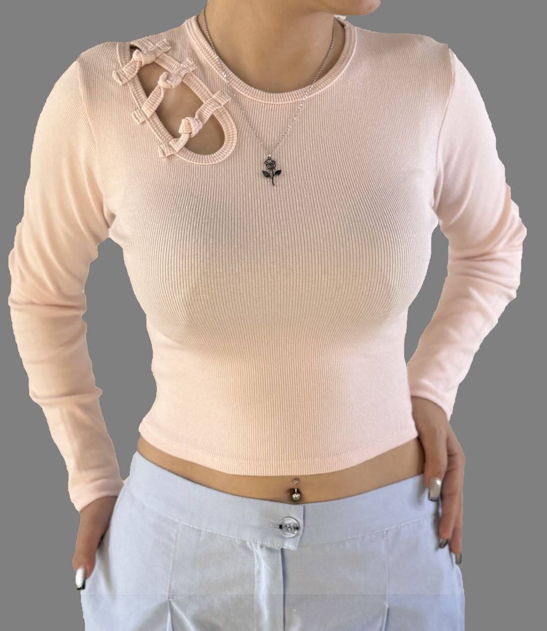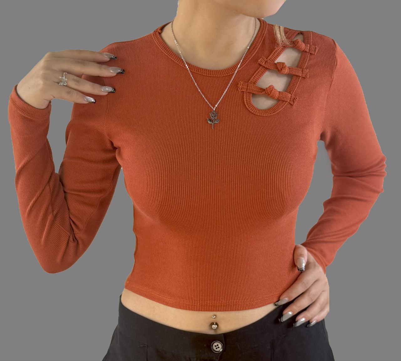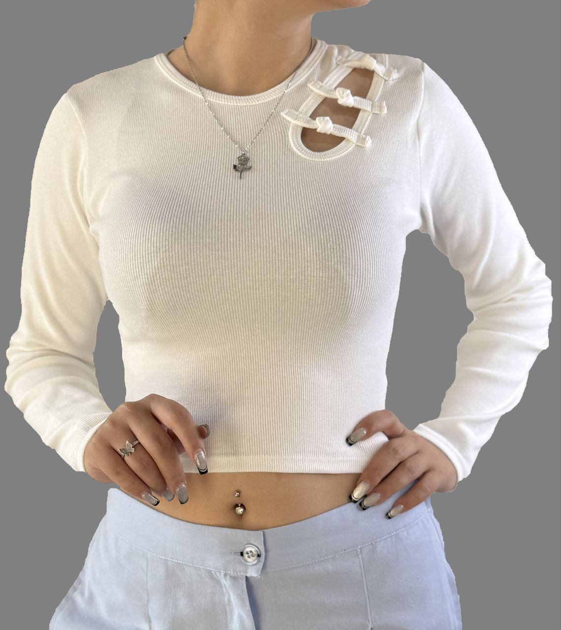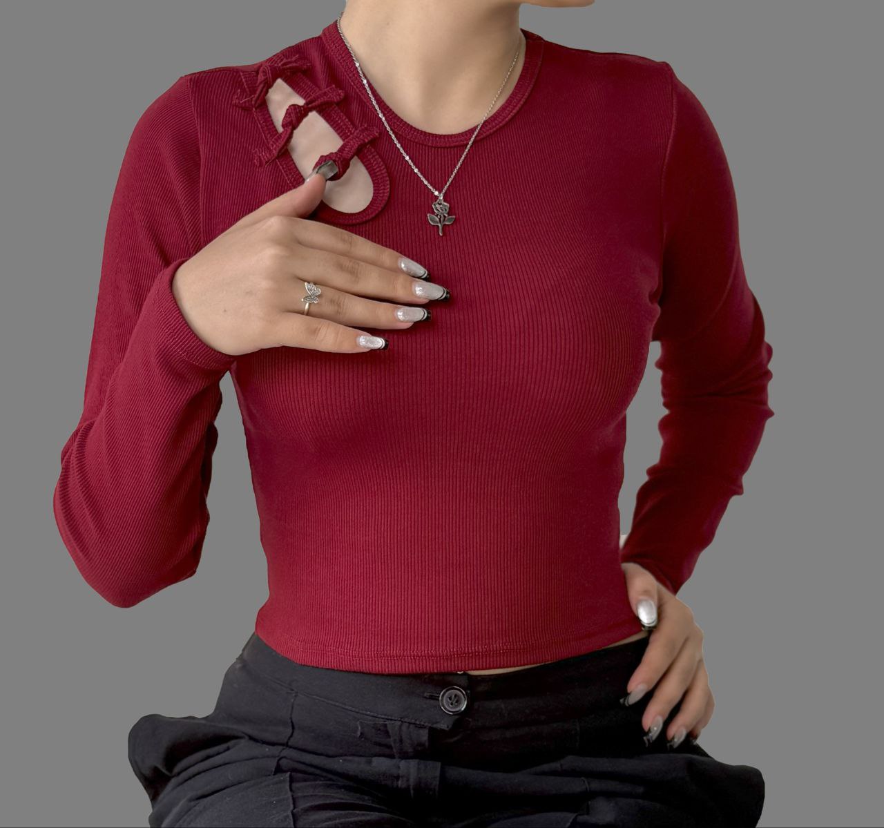 مدل: کراپ آستین بلند دخترانه شونه پاپیون